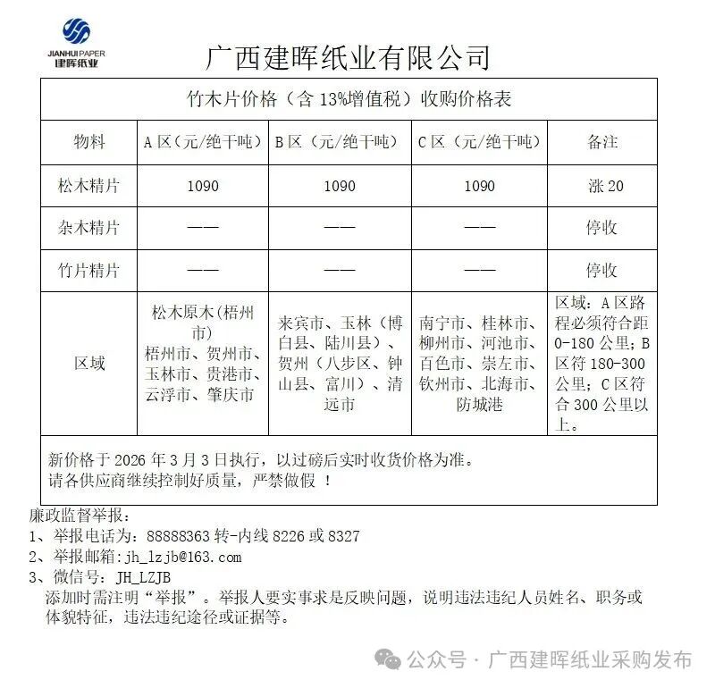 广西建晖国废报价2026年4月1日中午1:00时起