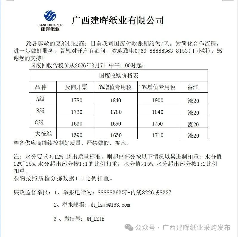 广西建晖国废报价2026年3月27日中午1:00时起