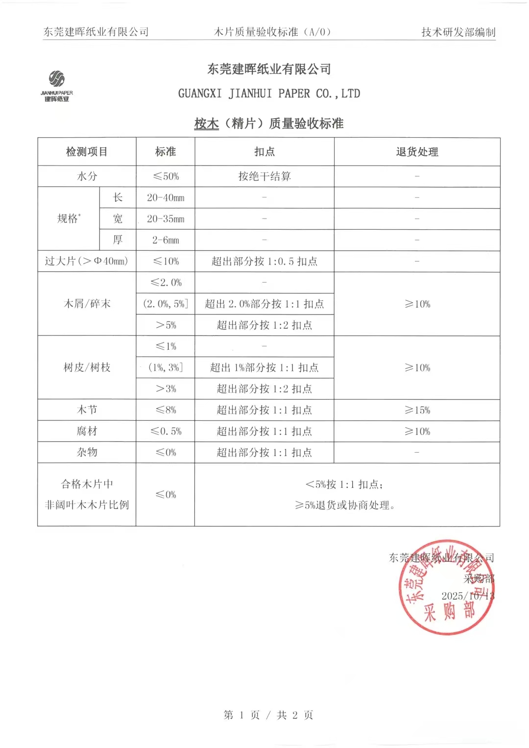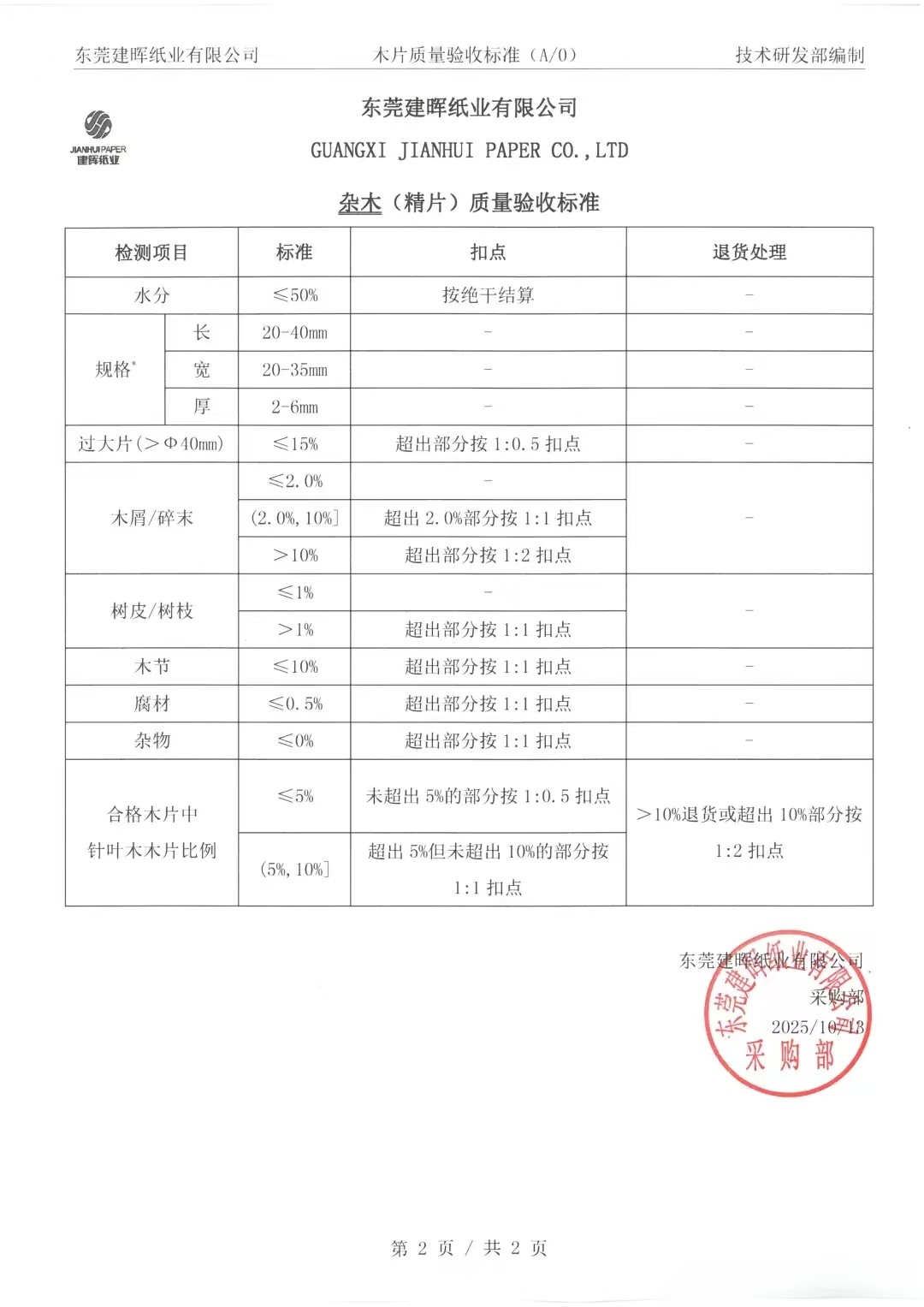 木片质量验收标准